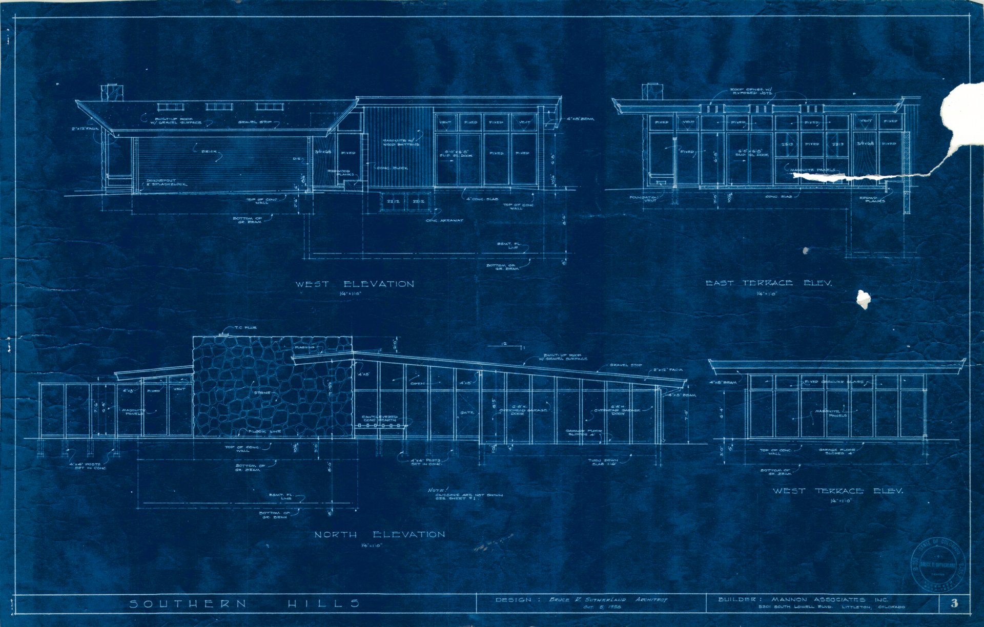 Original blue prints by Architect Bruce Sutherland